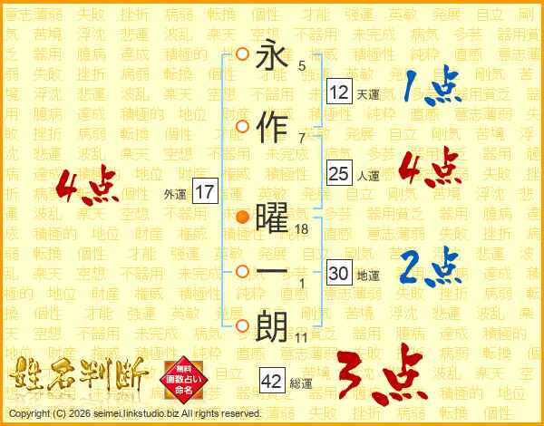 永作曜一朗さんの総運は42画の3点!