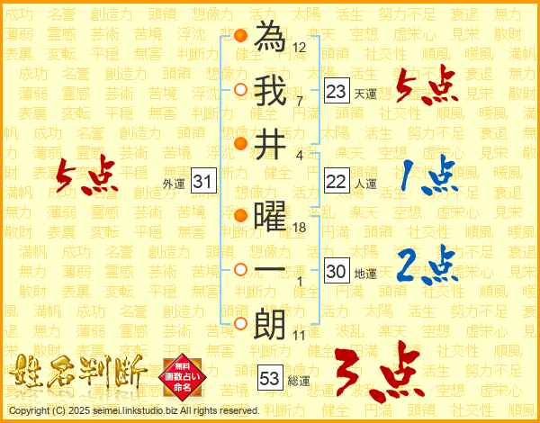 為(12画)我(7画)井(4画) 曜(18画)一(1画)朗(11画)