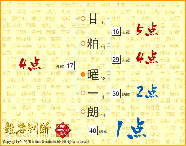 甘(5画)粕(11画) 曜(18画)一(1画)朗(11画)