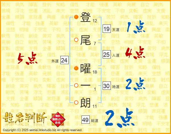 登(12画)尾(7画) 曜(18画)一(1画)朗(11画)