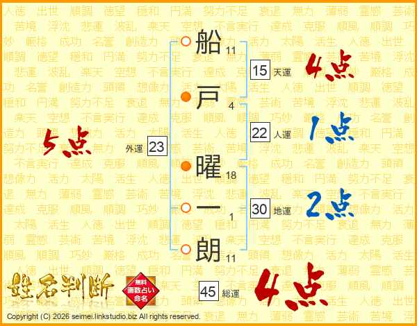 船(11画)戸(4画) 曜(18画)一(1画)朗(11画)