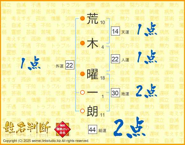 荒木曜一朗さんの総運は44画の2点!