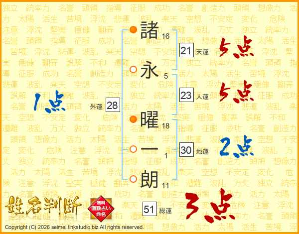 諸永曜一朗さんの天運は21画の5点!