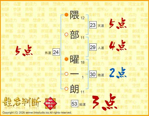 隈部曜一朗さんの天運は23画の5点!