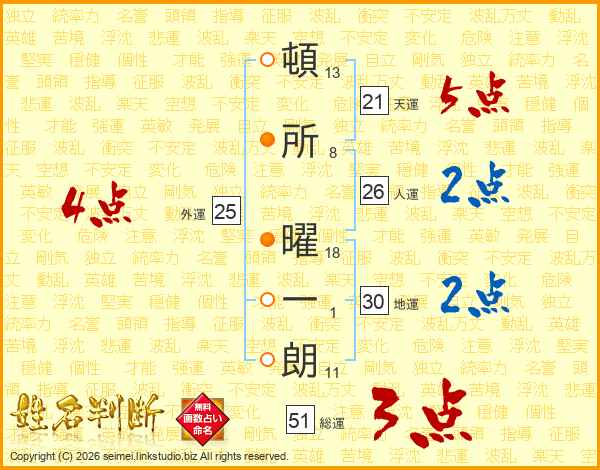 頓所曜一朗さんの総運は51画の3点!