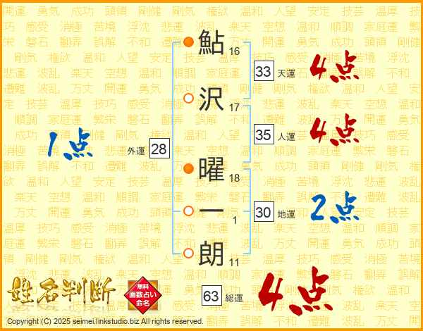 鮎沢曜一朗さんの総運は63画の4点!