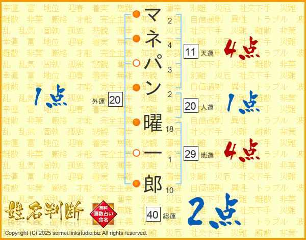 マ(2画)ネ(4画)パ(3画)ン(2画) 曜(18画)一(1画)郎(10画)