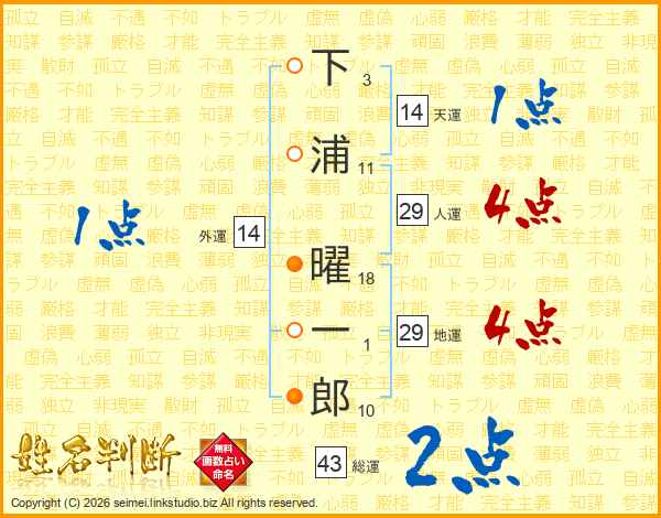 下(3画)浦(11画) 曜(18画)一(1画)郎(10画)