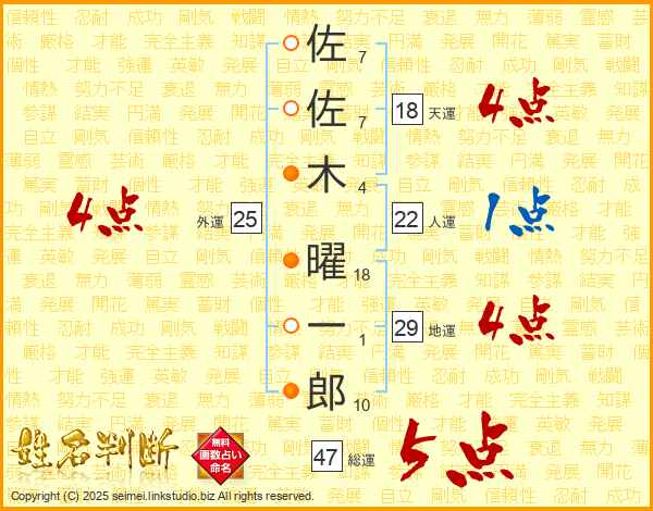 佐(7画)佐(7画)木(4画) 曜(18画)一(1画)郎(10画)