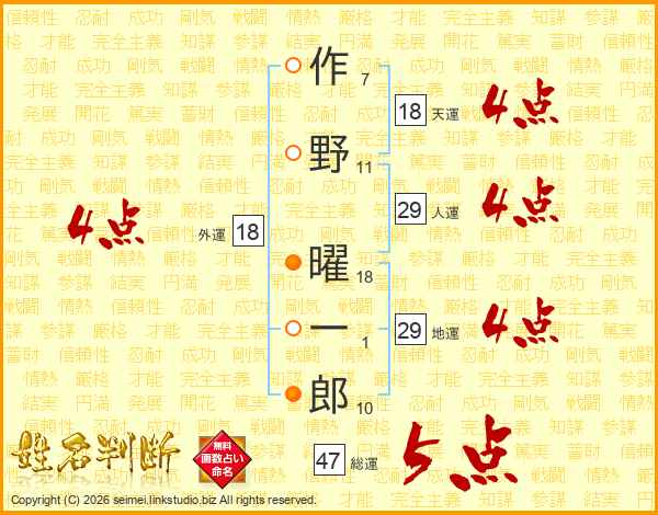 作(7画)野(11画) 曜(18画)一(1画)郎(10画)