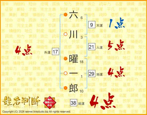 六川曜一郎さんの総運は38画の4点!