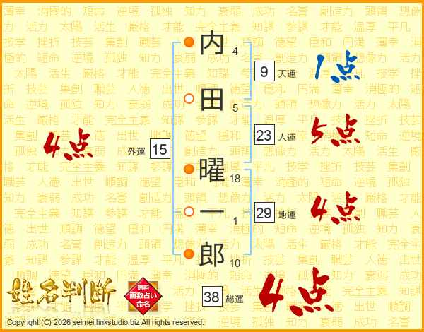 内田曜一郎さんの総運は38画の4点!