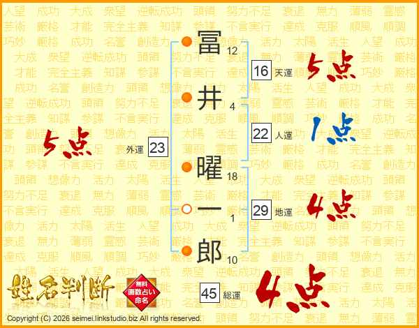 冨(12画)井(4画) 曜(18画)一(1画)郎(10画)