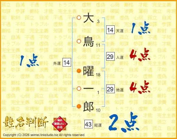 大鳥曜一郎さんの人運は29画の4点!