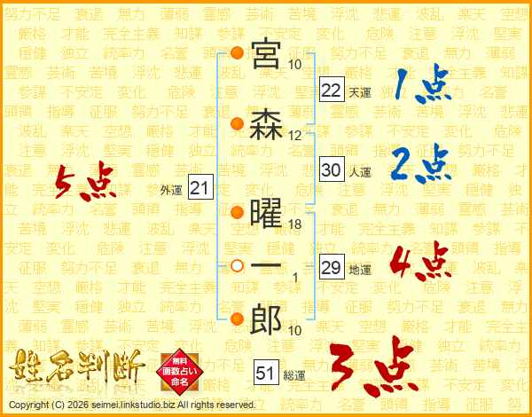 宮(10画)森(12画) 曜(18画)一(1画)郎(10画)