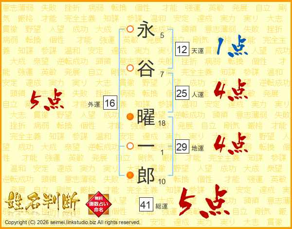 永谷曜一郎さんの総運は41画の5点!