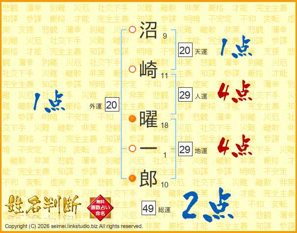 沼崎曜一郎さんの人運は29画の4点!