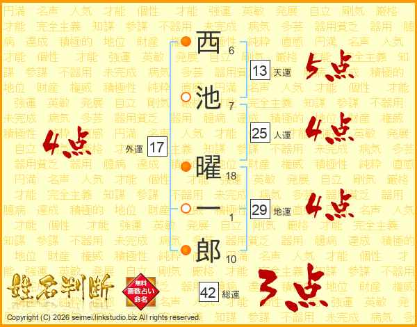 西池曜一郎さんの総運は42画の3点!