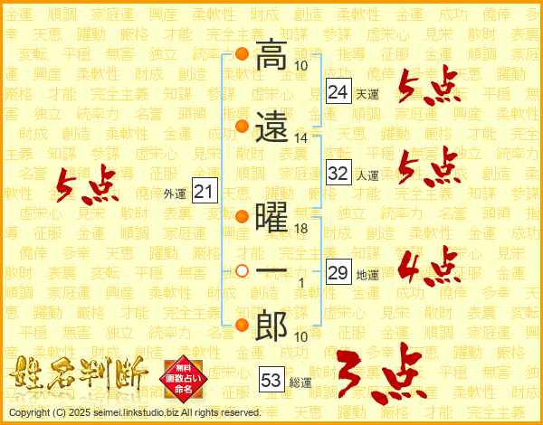 高遠曜一郎さんの総運は53画の3点!