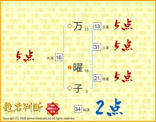 万(13画) 曜(18画)子(3画)