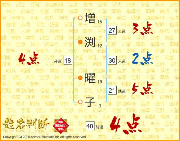 増(15画)渕(12画) 曜(18画)子(3画)