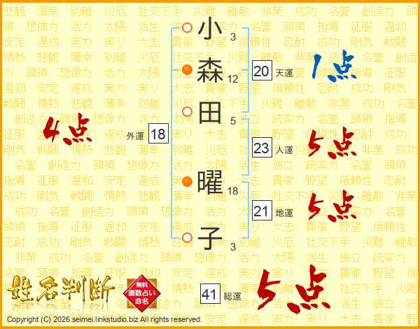 小森田曜子さんの外運は18画の4点!