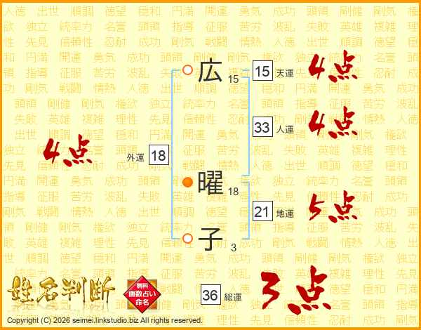 広(15画) 曜(18画)子(3画)