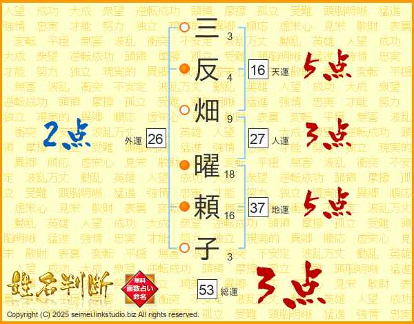 三(3画)反(4画)畑(9画) 曜(18画)頼(16画)子(3画)