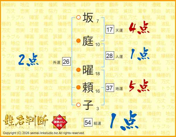 坂庭曜頼子さんの天運は17画の4点!