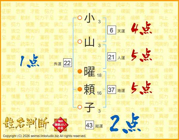 小山曜頼子さんの地運は37画の5点!