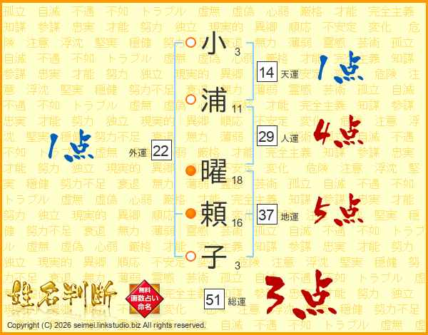 小浦曜頼子さんの総運は51画の3点!
