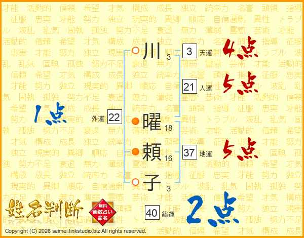 川(3画) 曜(18画)頼(16画)子(3画)