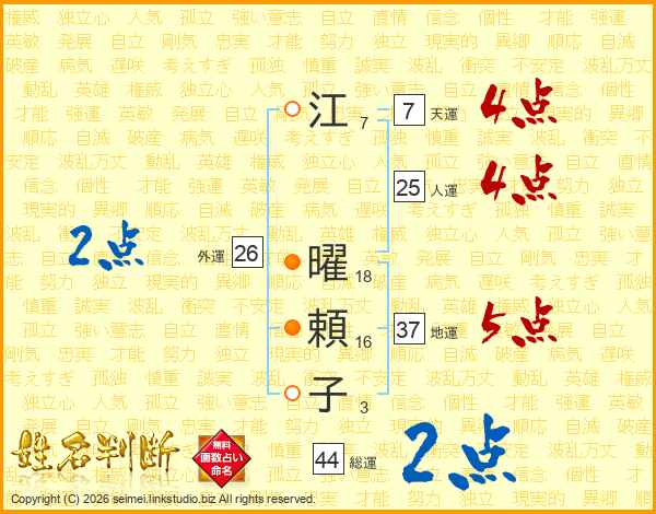 江(7画) 曜(18画)頼(16画)子(3画)