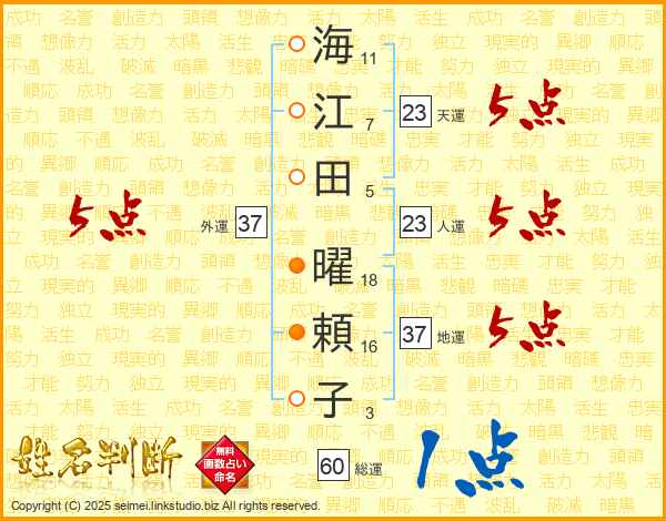 海(11画)江(7画)田(5画) 曜(18画)頼(16画)子(3画)