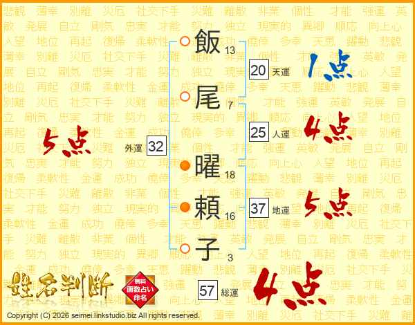 飯尾曜頼子さんの総運は57画の4点!