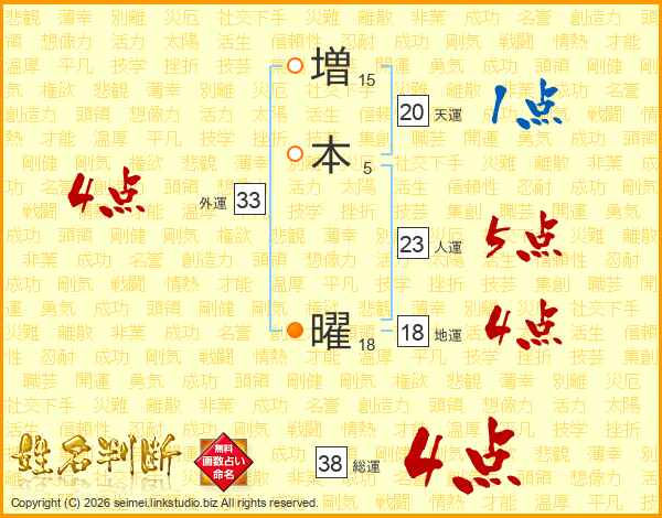 増本曜さんの総運は38画の4点!