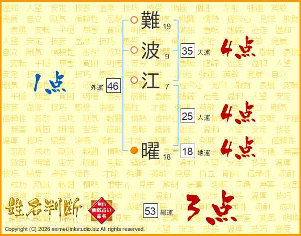難波江曜さんの総運は53画の3点!
