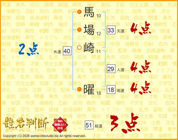 馬(10画)場(12画)崎(11画) 曜(18画)