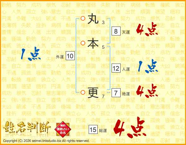 丸本更さんの総運は15画の4点!