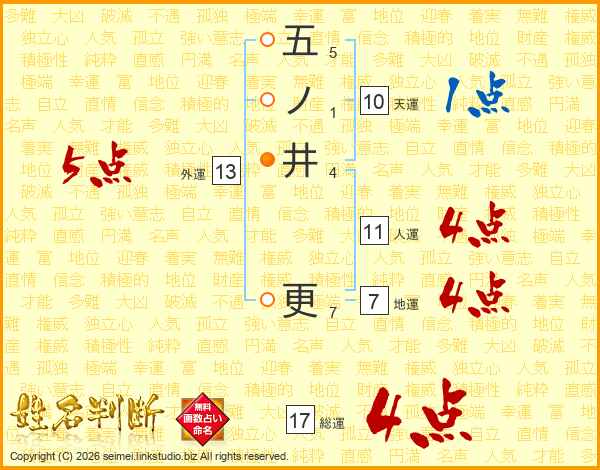 五ノ井更さんの総運は17画の4点!