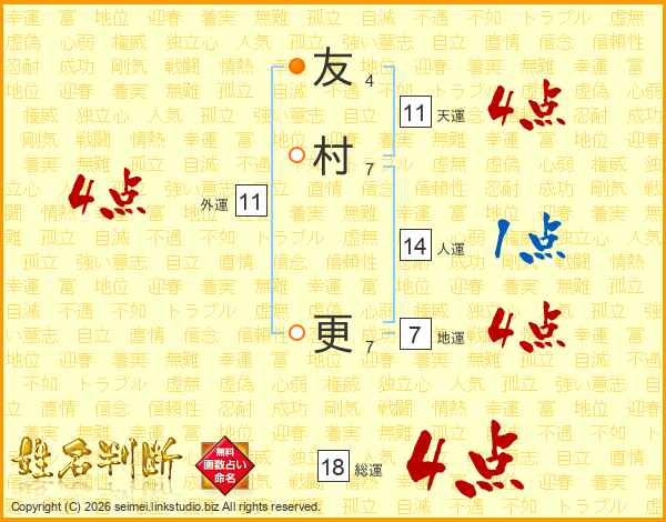 友村更さんの天運は11画の4点!