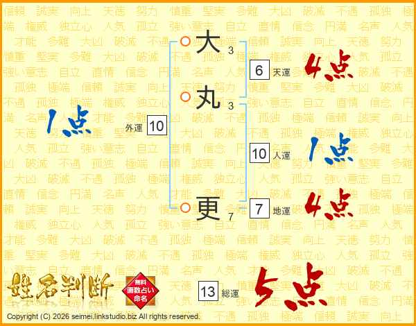 大丸更さんの総運は13画の5点!
