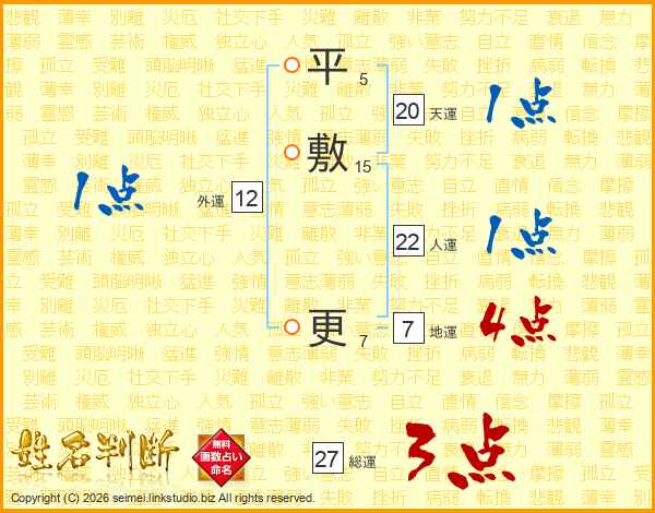 平敷更さんの人運は22画の1点!