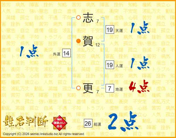 志賀更さんの天運は19画の1点!