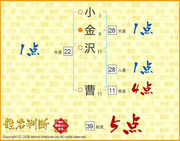 小金沢曹さんの総運は39画の5点!