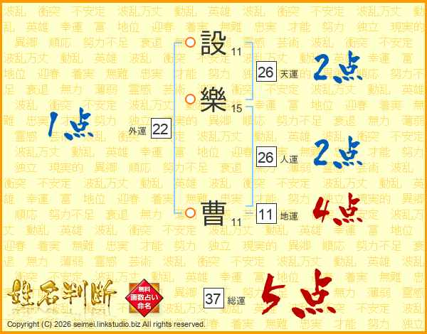 設樂曹さんの総運は37画の5点!