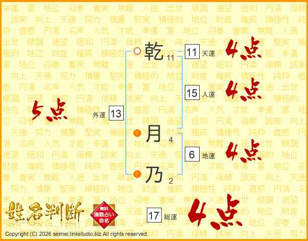 乾月乃さんの外運は13画の5点!