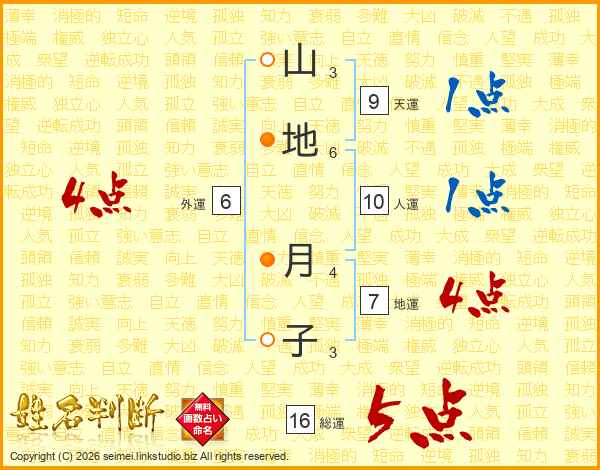 山地月子さんの総運は16画の5点!