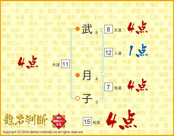 武(8画) 月(4画)子(3画)