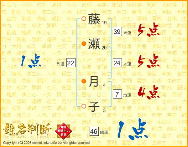 藤瀬月子さんの総運は46画の1点!